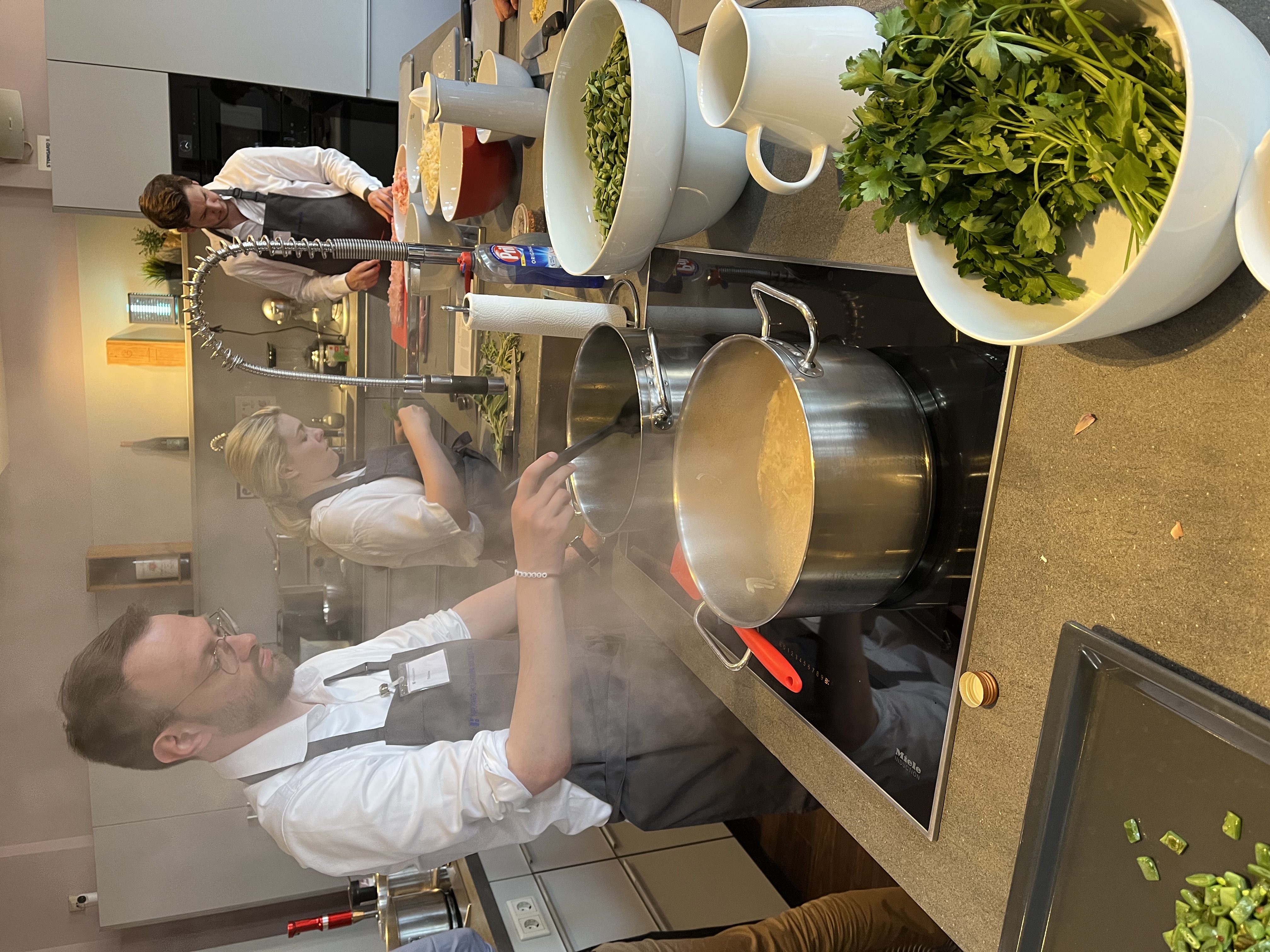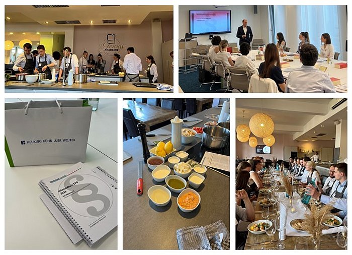 Nach einem intensiven und arbeitsreichen Examenskurs konnten sich die 22 Teilnehmer beim anschließenden gemeinsamen Kochen in der Genussakademie in lockerer Atmosphäre austauschen und sich über die Einstiegs- und Karrieremöglichkeiten sowie den Arbeitsalltag bei Heuking Kühn Lüer Wojtek informieren. Der Abend fand einen schönen Ausklang bei leckerem Essen und guten Gesprächen.