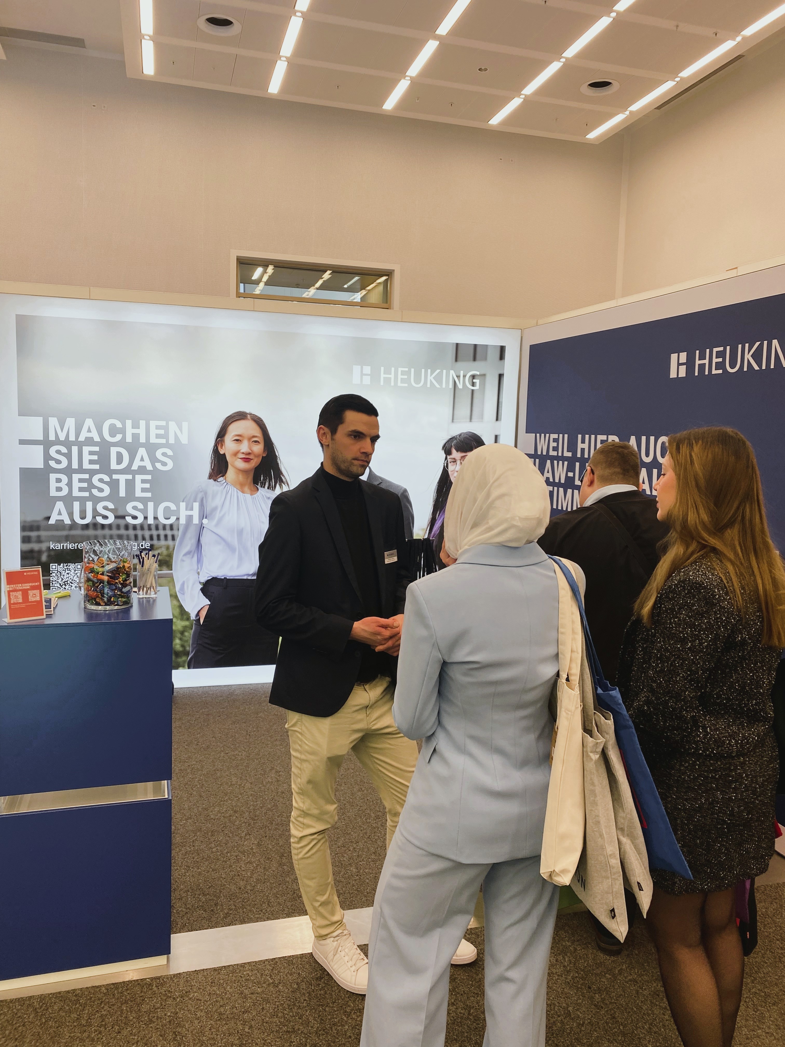 Wir wurden vor Ort unterstützt von Monique Sandidge, Tatiana Vorotnitskaya, Dr. Annabel Laura Wolf und Felix Schütte, die den Besucherinnen und Besuchern Einblicke in die anwaltliche Praxis gaben und Fragen zu Einstiegsmöglichkeiten beantworteten.