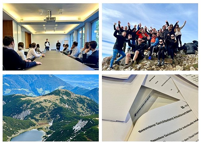 Gestartet wurde der Summit am Münchener Standort mit einer Vorstellungsrunde sowie einer Einführung in die „Heuking Litigation“. Angekommen im schönen Fall am Sylvensteinsee ging es arbeitsintensiv mit einer von Dr. Volker Howe und Dr. Christian Strasser geleiteten Case Study weiter. Die Teilnehmenden – unterstützt durch tatkräftige Heuking Kolleginnen und Kollegen – entwickelten in ihren jeweiligen Gruppen Strategien für eine Torpedoklage. Es wurde lebhaft diskutiert und prozessiert. Ausklang fand der arbeitsreiche Tag beim gemeinsamen Abendessen. Am nächsten Tag ging es über die Grenze zum Achensee wo gemeinsam der „Summit“ der Rofanspitze (mit 2.259 Meter über dem Meeresspiegel) bestiegen wurde. Eine tolle Gelegenheit, um sich auszutauschen und zu netzwerken. Die Gruppe bewies Ausdauer und bezwang den „Summit“ erfolgreich, sodass sich alle den Ausklang des Tages auf der Erfurter Hütte sowie abends im Hotel redlich verdient hatten.