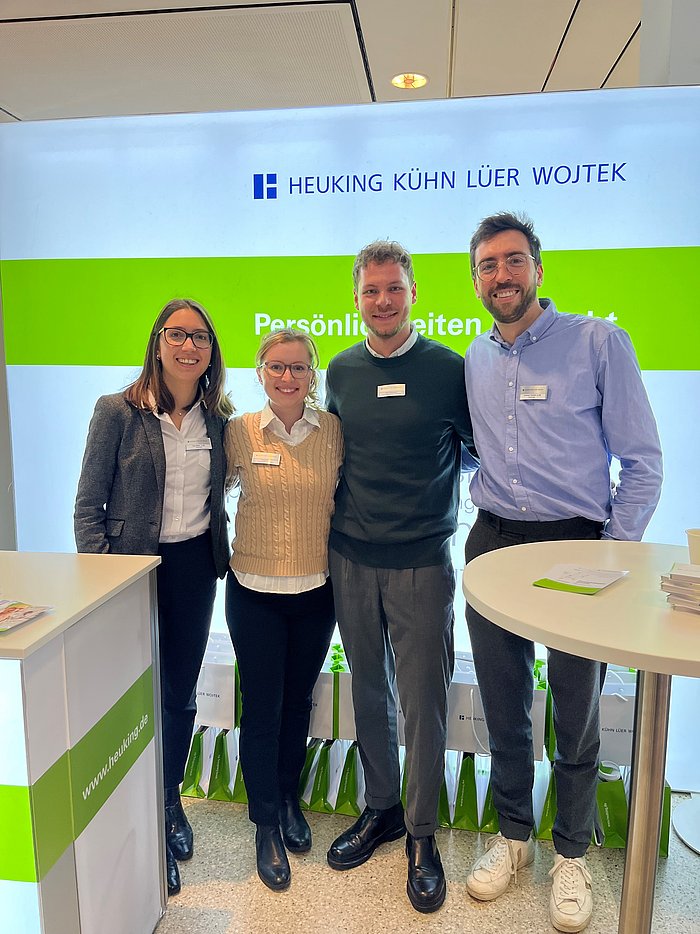Tatkräftig unterstützt wurde die Messe durch Stuttgarter und Frankfurter Kollegen. Anne-Sophie Karg, Vera Bauer, Michèle von Lewinski und Johannes Reuther berichteten über ihre tägliche Arbeit und informierten über Einstiegs- und Karrieremöglichkeiten bei Heuking.