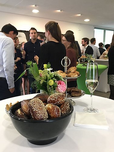 Nach der Eröffnungsrede von der Hamburger Partnerin Dr. Elke Umbeck, begannen die Teams sich untereinander und die Richter des Moot Courts kennenzulernen und sich auszutauschen. Bei einem Flying Buffet, guten Gesprächen und Getränken war die Stimmung entspannt und fröhlich - bis der wichtigste Moment des Abends eintrat.