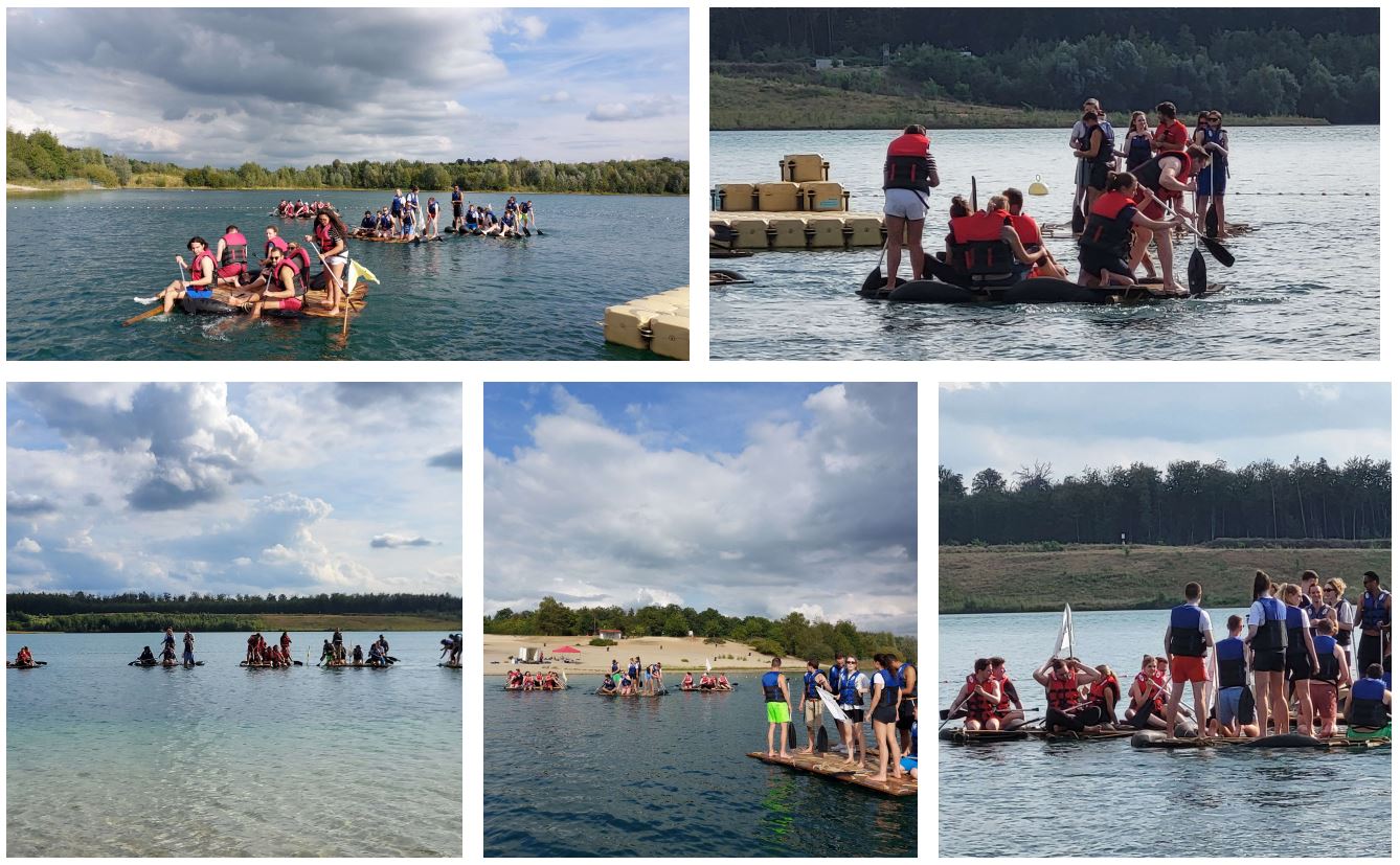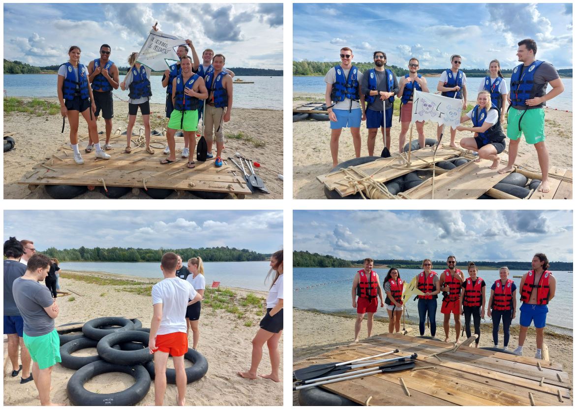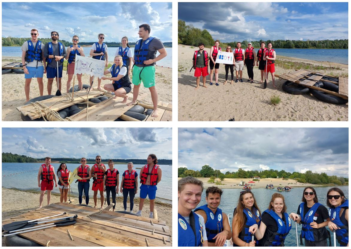 Aufgeteilt in verschiedene Gruppen bestand die Team-Aufgabe darin, mit den vorhandenen Materialien ein tragfähiges Floß zu bauen, welches beim anschließendem Floßrennen eingesetzt werden sollte. Auch wenn der ein oder andere Teilnehmer hierbei nicht trocken geblieben ist, hat dies der Stimmung keinen Abbruch getan und alle Floße sind ins Ziel gekommen. Nach der (mehr oder weniger freiwilligen) Abkühlung standen ein leckeres Grillbuffet sowie erfrischende Getränke für alle bereit.