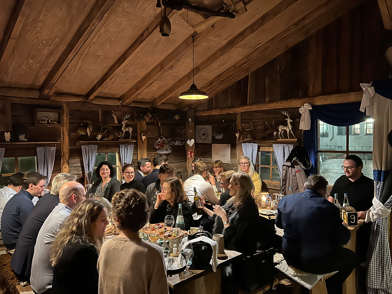 In Stuttgart trafen sich alle teilnehmenden Kolleginnen und Kollegen gemeinsam zu einem Umtrunk und leckerem Weihnachtsgebäck in der Cafeteria der Kanzlei. Nach der Eröffnungsrede von Jens-Hendrik Janzen ging es zur Location. In der Almhütte des Maritim Hotels erwartete die Mitarbeitenden in gemütlicher Atmosphäre ein tolles weihnachtliches Buffet. Die Stimmung war gelassen und alle genossen das gemütliche Beisammensein und den gemeinsamen Austausch bis in die späten Abendstunden. Am 8. Dezember feierte Köln seine Weihnachtsfeier. Gestartet wurde mit Glühwein in geselliger Runde bevor es zur eigentlichen Feier in ganz besonderer Kulisse ging - einem mehr als 100 Jahre alten Jugendstilbad. Ein reichhaltiges Buffet sorgte für eine gute Einstimmung auf den weiteren Abend, bei der zunächst eine Kölner Live-Band für reichlich Stimmung sorgte. Eine Foto-Box bot eine Alternative für alle, die es nicht gleich auf die Tanzfläche zog.