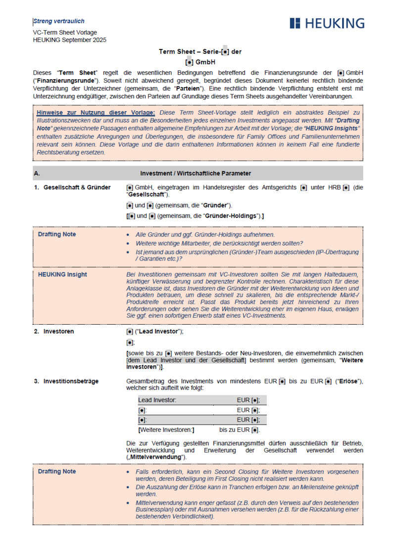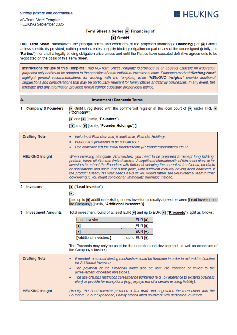 Über den untenstehenden Link erhalten Sie Zugriff auf ein kommentiertes Venture Capital Muster Term Sheet, das insbesondere die Interessen von Family Offices berücksichtigt (wir empfehlen grds. die Verwendung der englischen Sprachfassung).