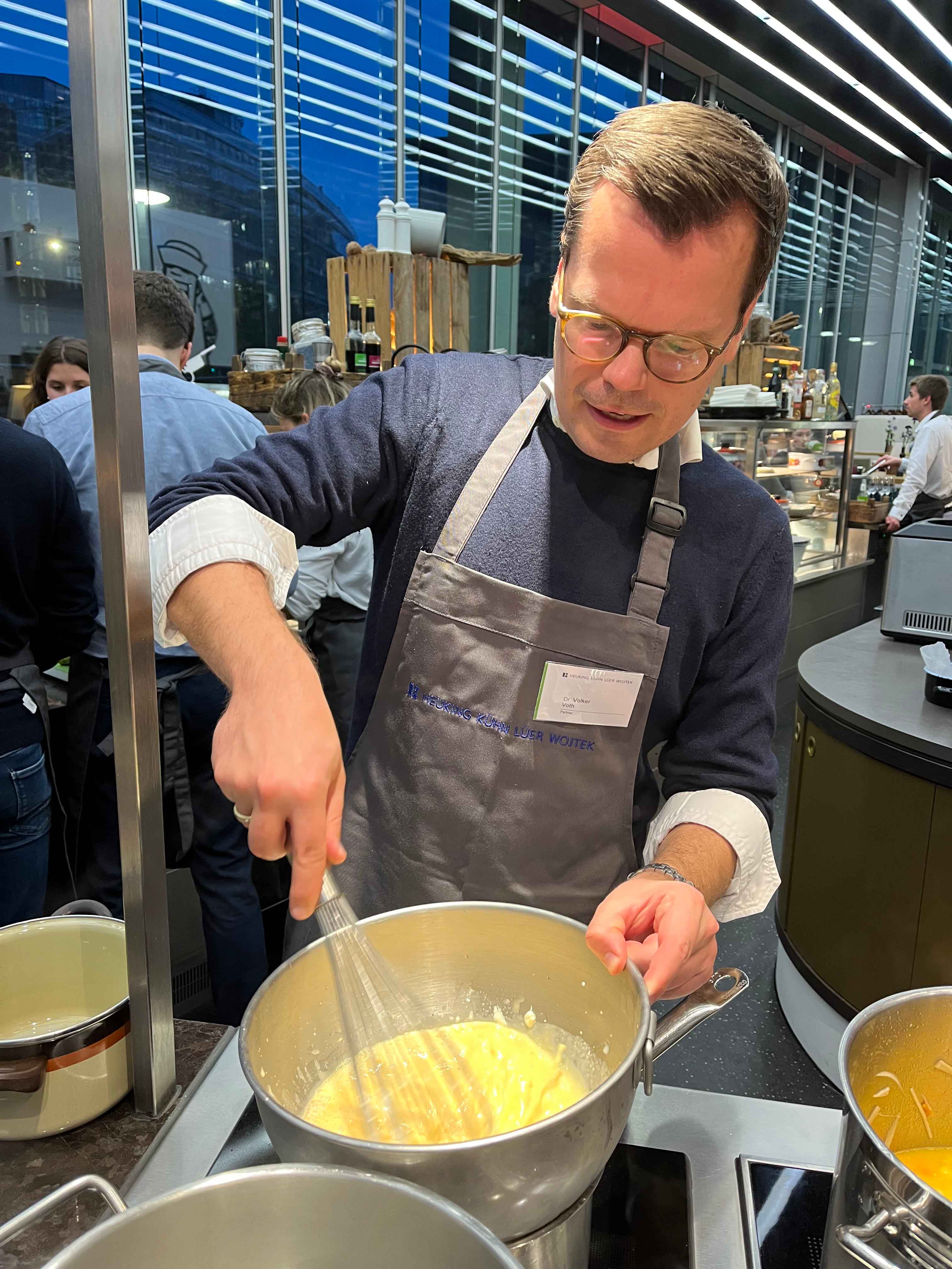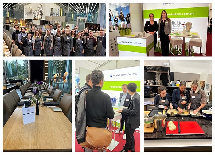 Auch in diesem Jahr waren wir mit einem eigenen Stand vertreten. Am Abend vor der Messe hatten Absolventen und Studierende der Bucerius Law School bei einem gemeinsamen Kochevent in der Kochschule VLET die Gelegenheit mit den Anwältinnen und Anwälten der Kanzlei ins Gespräch kommen. Es wurde fleißig geschnibbelt, gerührt und gebraten, auch der ein oder andere Insidertipp vom Kochprofi wurde abgegriffen.
