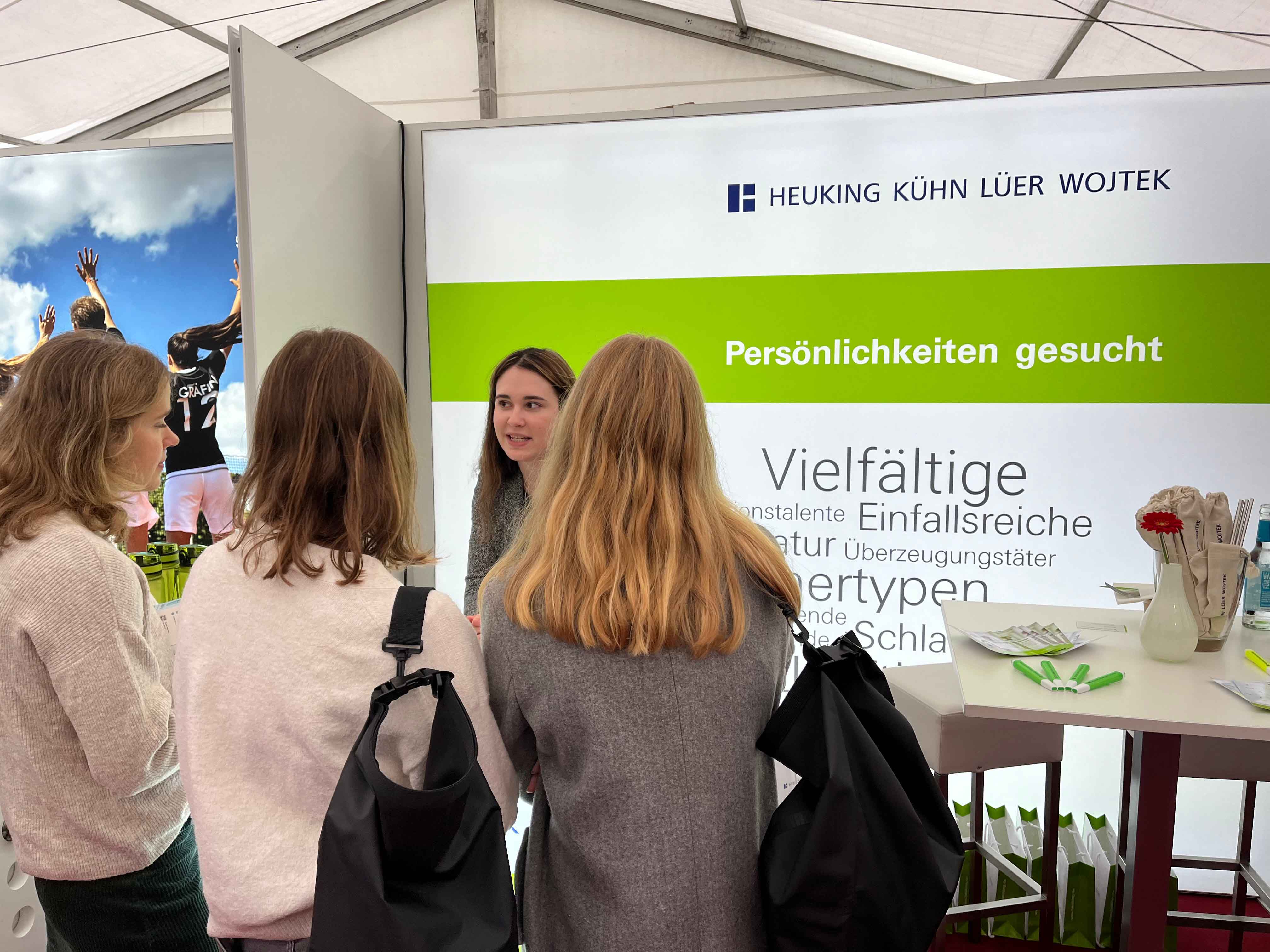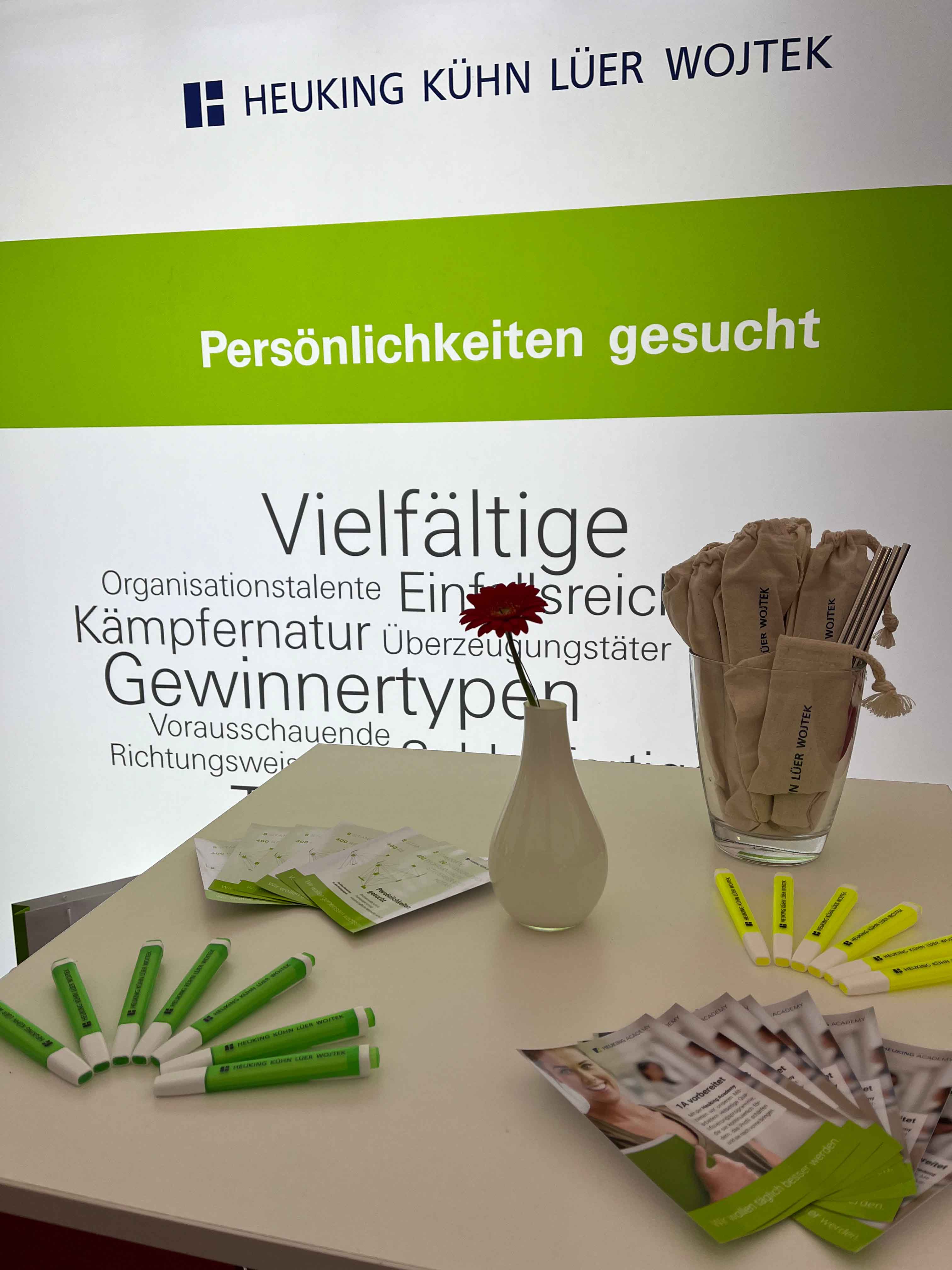 Bei der Absolventenmesse kommen alle wichtigen Förderer zusammen, um ihre potenziellen neuen Mitarbeitenden kennen zu lernen und sich am Messestand sowie in Einzelgesprächen zu präsentieren. In einer Vielzahl von persönlichen Gesprächen informierten unsere Anwältinnen und Anwälte die Absolventen über die Karrieremöglichkeiten und den Arbeitsalltag in der Kanzlei. Am eigenen Messestand bot sich für alle Interessierten zugleich die Gelegenheit, Auskunft zu Einstiegsmöglichkeiten in der Kanzlei zu erhalten.