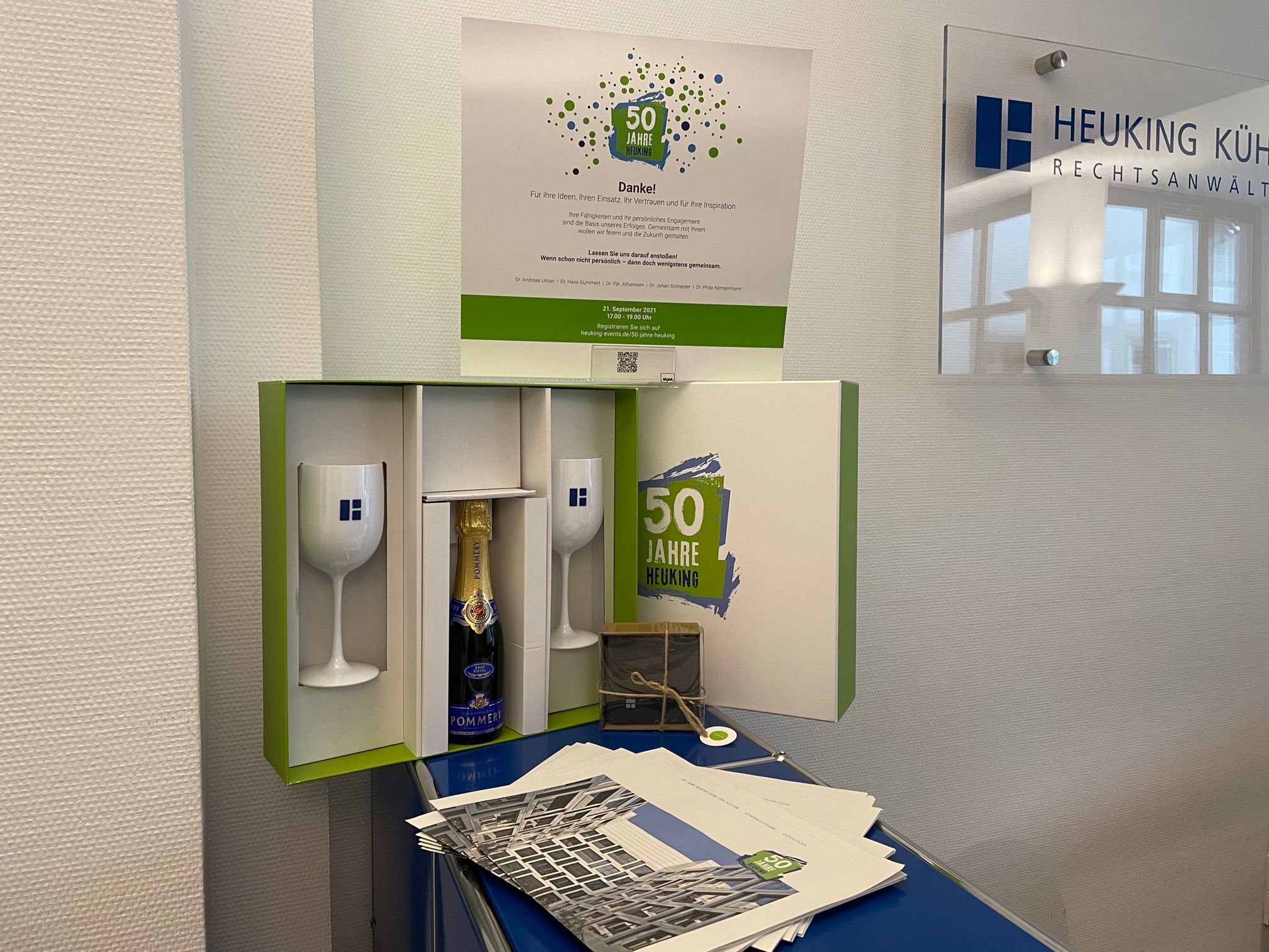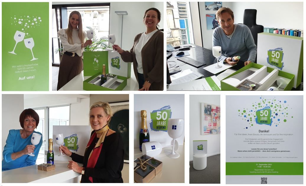 Den runden Geburtstag in großem Stil auch in Pandemiezeiten feiern: Die Möglichkeit hat sich Heuking Kühn Lüer Wojtek nicht nehmen lassen und die Gründung der Kanzlei vor 50 Jahren virtuell zelebriert. Eine überwältigende Anzahl von Kolleginnen und Kollegen aus allen neun Standorten haben gestern vor dem Bildschirm auf die Kanzlei angestoßen. Den passenden Champagner samt Gläsern und Untersetzern gab es vorab als kleine Aufmerksamkeit für alle 1.200 Mitarbeiter dazu.