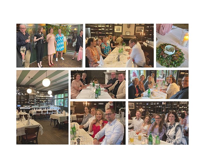 Das Berliner Sommerfest startete mit Starkregen leider nicht so sommerlich, wie gewünscht – von dem trüben Wetter ließen sich die 30 Kolleginnen und Kollegen jedoch nicht die Laune vermiesen. In gemütlicher ausgelassener Runde und stilvollem Ambiente genossen alle gemeinsam bei leckerem, vielfältigem Essen den Abend. Auch ließ nach einiger Zeit glücklicherweise der Regen nach, sodass die Feier im Biergarten fortgesetzt werden konnte.