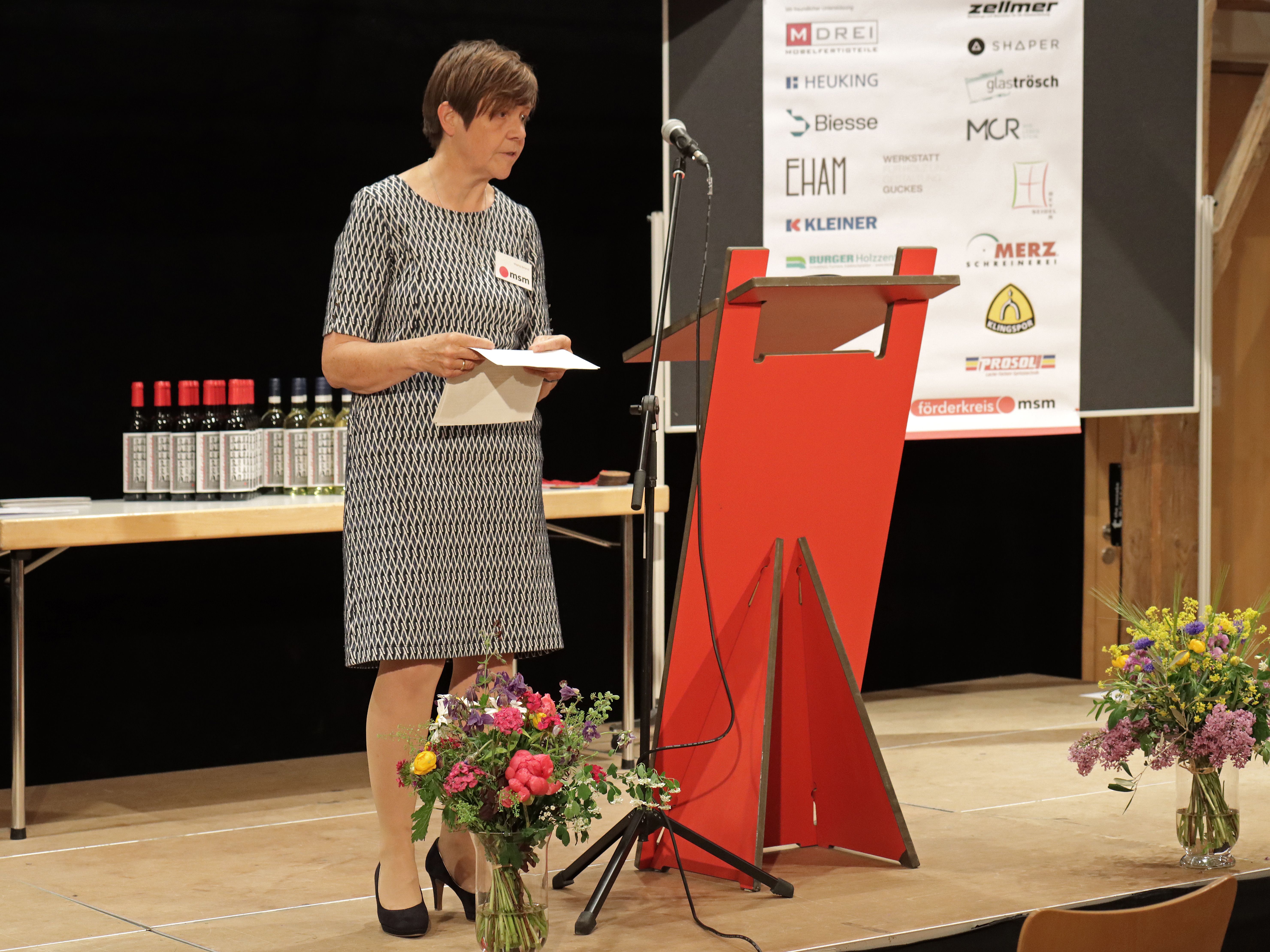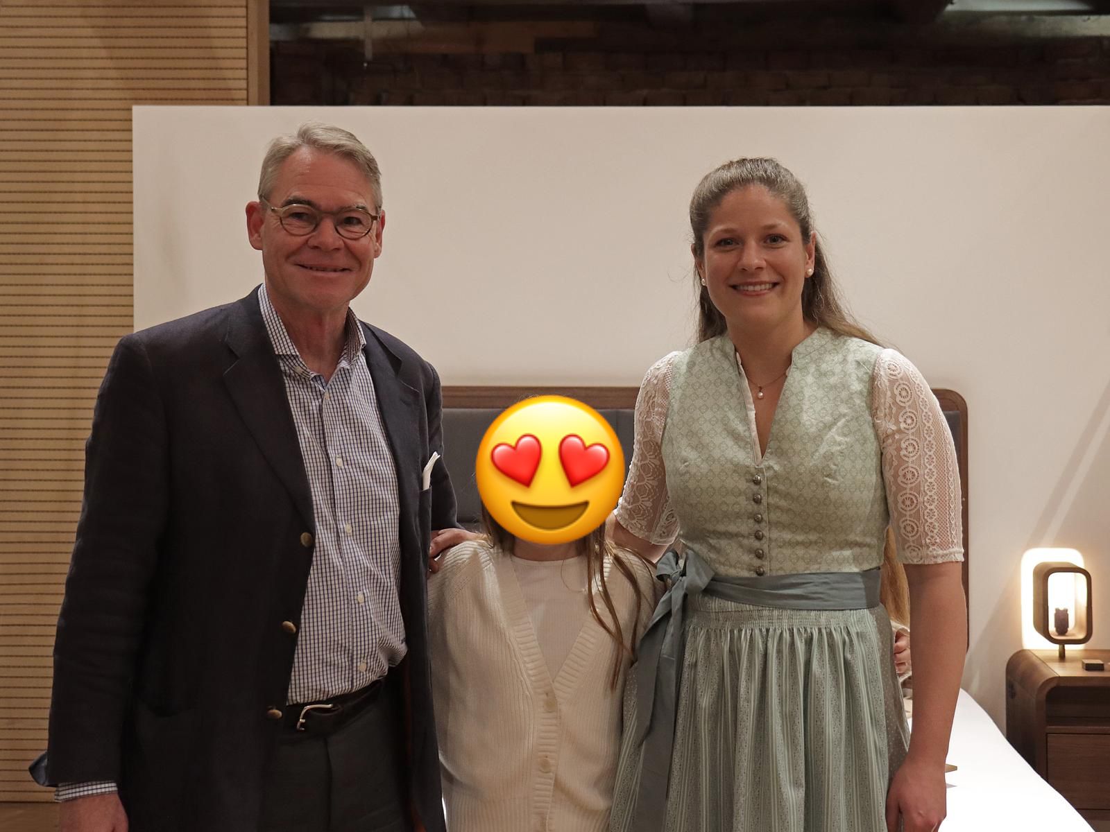 Für HEUKING war Dr. Armin Freiherr von Grießenbeck vor Ort, hier im Bild mit Schreinermeisterin Michaela Eisen.