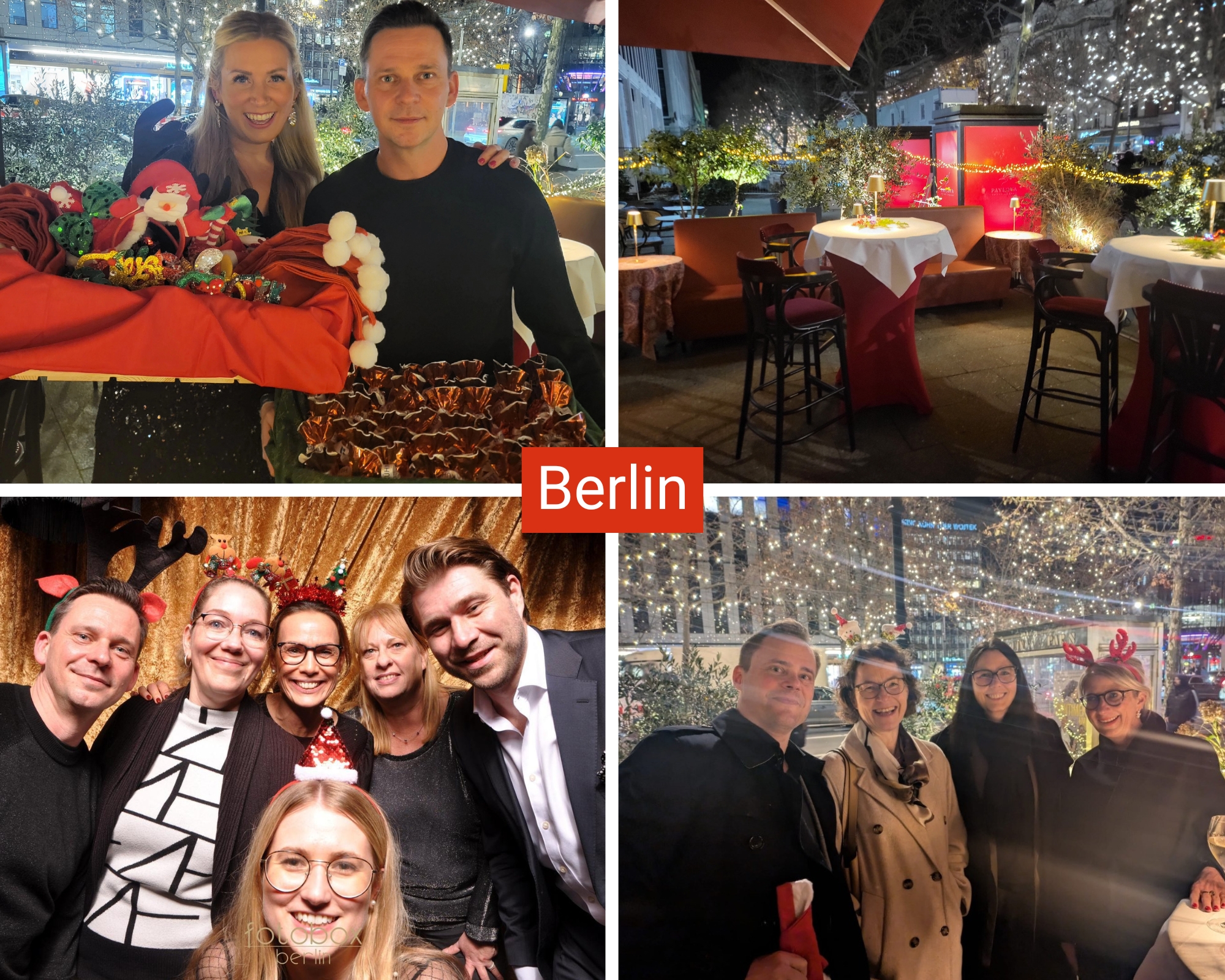 Am 11. Dezember ging es weiter in Berlin. Die Brasserie Le Paris bot eine winterliche Atmosphäre mit Feuerschale, Weihnachtsbaum und Glühwein. Ein exzellentes Menü, eine Fotobox für lustige Schnappschüsse und ein DJ machten den Abend zu einem unvergesslichen Erlebnis.