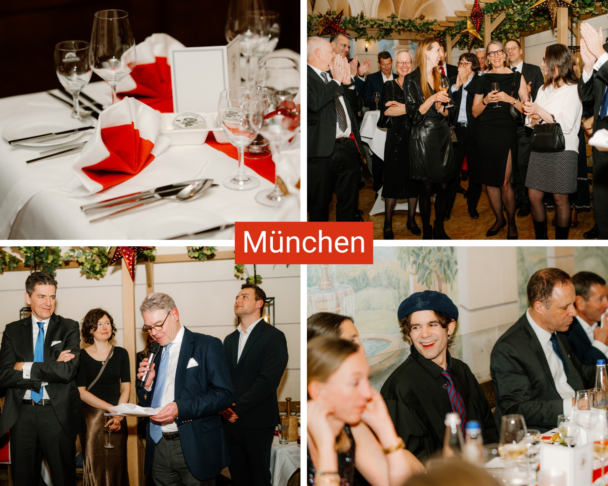 Am 18. Dezember war München an der Reihe. Im „Franziskaner an der Residenz“ kamen rund 130 Kolleginnen und Kollegen zusammen. Nach der Begrüßung durch Dr. von Griessenbeck wurde ein festliches Menü serviert, begleitet von Musik des DJs. Die Stimmung war ausgelassen, es wurde getanzt und viel gelacht.