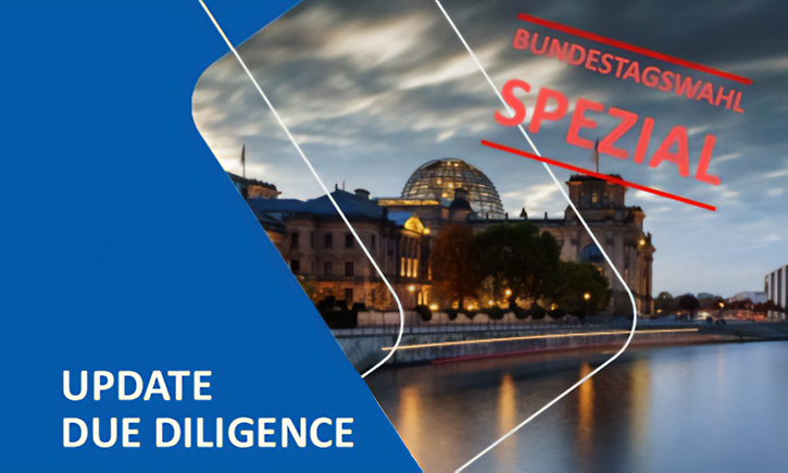 Diese Fragestellungen und Handlungsfelder diskutieren wir beim diesjährigen UPDATE DUE DILIGENCE – Bundestagswahl-Spezial in unserem Experten-Talk. Garantiert PowerPoint-frei im abwechslungsreichen Talkshow-Format.