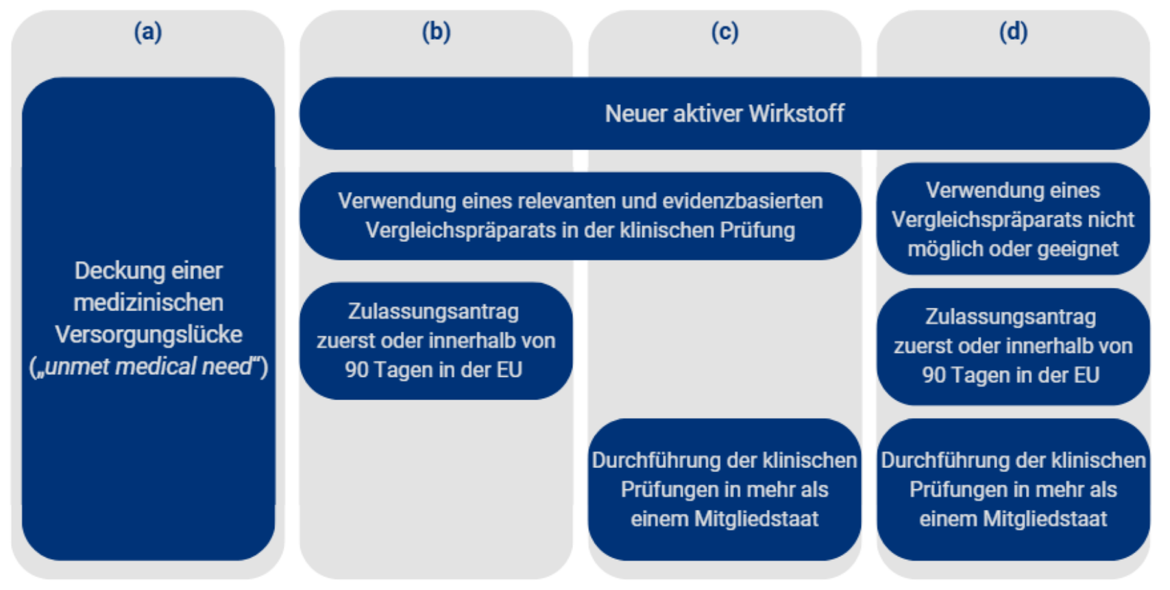 Die Marktexklusivität wird differenziert geregelt: Für reguläre Orphan Drugs ist künftig eine Exklusivitätsfrist von neun (9) Jahren vorgesehen, während Breakthrough-Orphan Drugs eine verlängerte Exklusivität von elf (11) Jahren genießen. Erfolgt die Zulassung auf Grundlage bibliografischer Daten, beträgt die Marktexklusivität lediglich vier (4) Jahre.