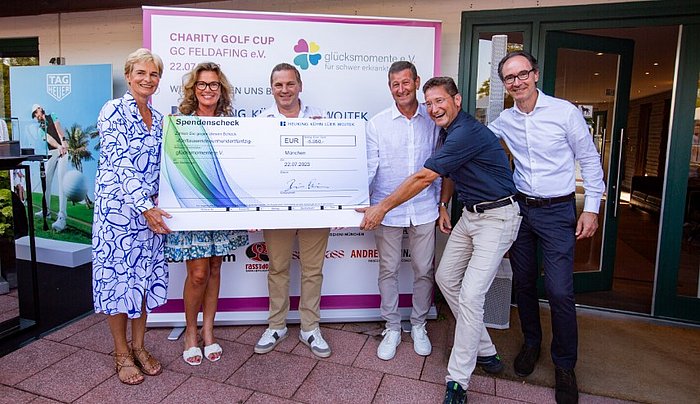 Am 22. Juli haben vier Münchner Partner im Zuge eines Charity-Golfturniers einen Spendenscheck an glücksmomente e. V. überreicht.