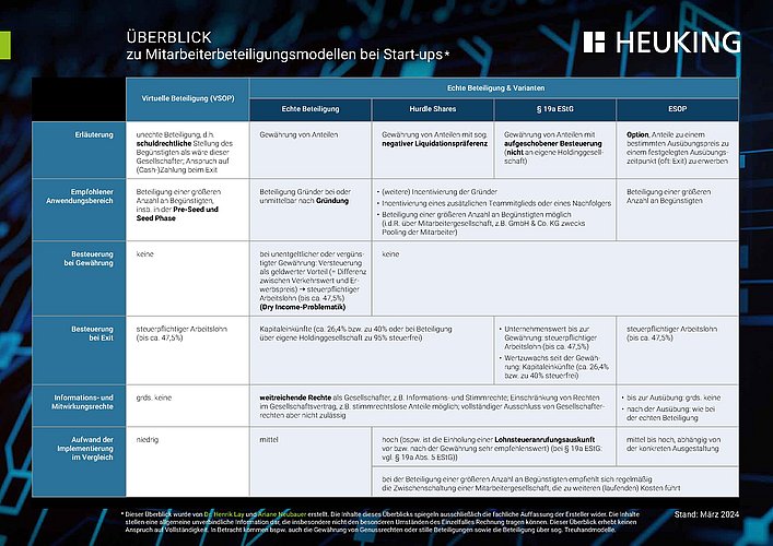 Insbesondere angesichts des internationalen Wettbewerbs um Talente wäre es unseres Erachtens begrüßenswert gewesen, wenn die ursprünglich vorgesehene Pauschalbesteuerung den Weg in den Regierungsentwurf gefunden hätte und nicht auf die Gewährung echter Anteile beschränkt geblieben wäre, sondern auch die Besteuerung von virtuellen Anteilen umfasst hätte. Schließlich ergeben sich bei der Gewährung einer „echten“ Beteiligung eine Reihe von rechtlichen Folgefragen. Auch die mit einer „echten“ Beteiligung verbundenen Kosten dürfen nicht außer Acht gelassen werden. Es ist aber wohl nicht zu erwarten, dass dieser Punkt im weiteren Gesetzgebungsverfahren noch einmal aufgegriffen wird.