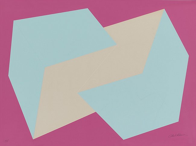 Charles Hinman (*1932 in Syracuse, New York) ist ein abstrakter minimalistischer Maler, der für die Erstellung dreidimensionaler Leinwandbilder in der Mitte der 1960er Jahre bekannt ist. Im Zentrum seiner Arbeit steht die Auseinandersetzung mit der Shaped Canvas und die Übertragung in den dreidimensionalen Raum. Er schuf eine Reihe von Grafiken, in denen die serielle Untersuchung räumlich wirkender geometrischer Konstellationen durch Josef Albers fortgesetzt wird. Hinman führte die Ideen Albers’ weiter, die eine besondere Dynamik der Formen und Farben – unter höchst ökonomischem Einsatz der Mittel – bedeuteten.