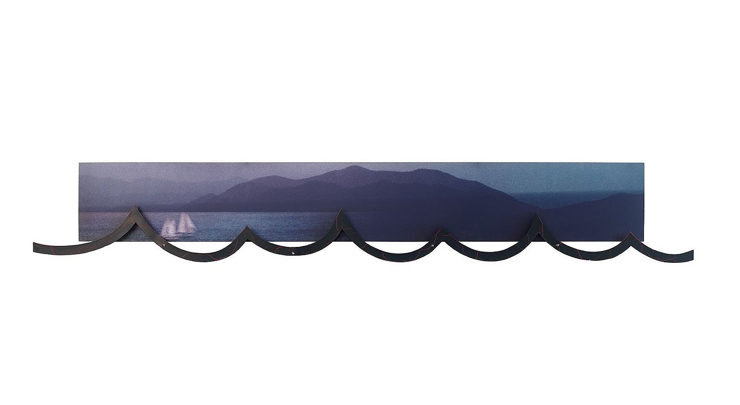 Das erzählerische Wandbild-Farbfoto „Ships passing in the night“, vereint visuelle und verbale Komponenten. Die Fotografie der San Francisco Bay ist auf einem wellenartigen Metallprofil aufgetragen, wodurch die banale See-Panorama Fotografie monumentalisiert wird. Der Künstler verwandelt eine scheinbar alltägliche und gewöhnliche Geschichte zum außerordentlichen Bild.