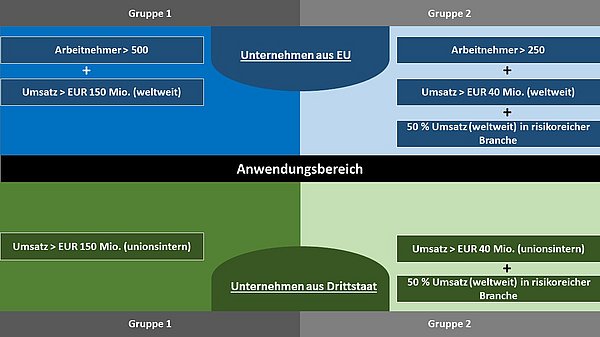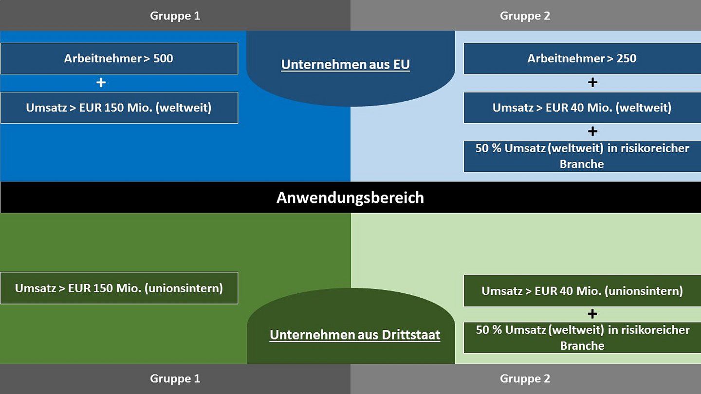 The draft Directive enlarges the scope of the new regulations compared to the Supply Chain Due Diligence Act. Companies that meet the following criteria are affected: