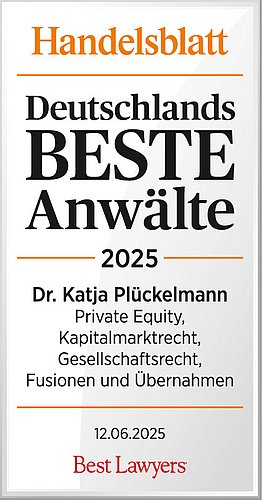 Dr. Katja Plückelmann advises medium-sized and listed companies and their shareholders on all matters relating to corporate law. Her work ranges from corporate housekeeping and shareholder disputes to capital measures, company acquisitions, and private equity transactions. She also provides valuable assistance with complex legal issues outside the norm.