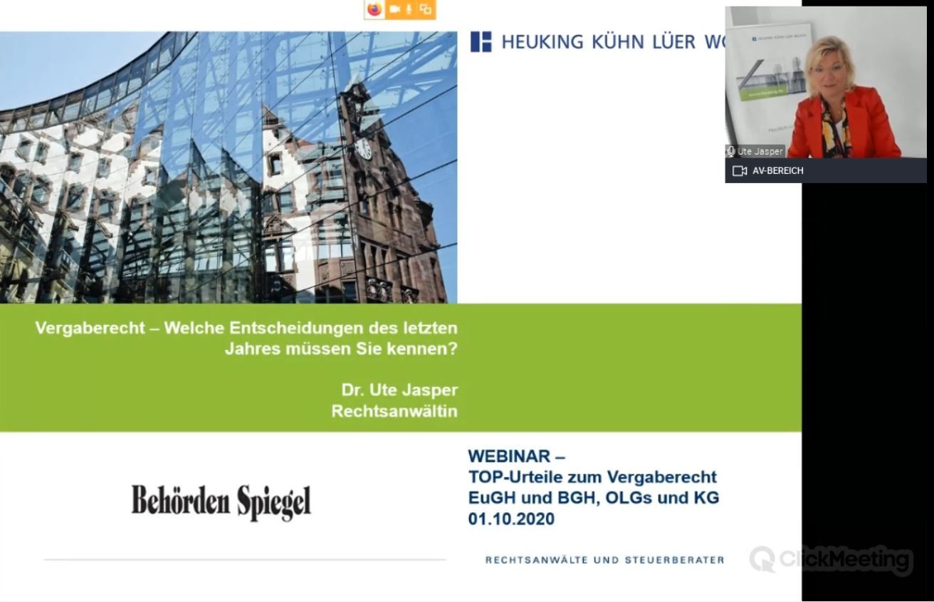 - Update Vergabe, Praxisseminar des Behörden Spiegel in Kooperation mit Heuking Kühn Lüer Wojtek, September 27, 2019 in Cologne