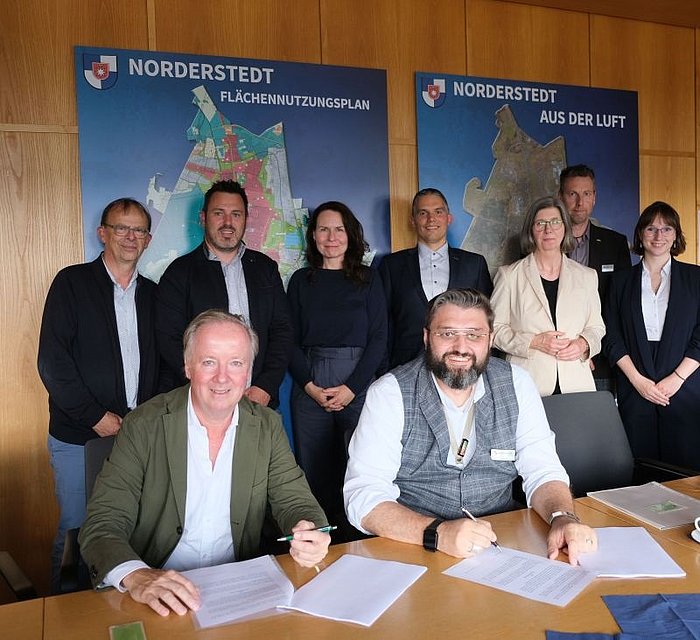 The team supported the City in particular with the bidding procedure, contract negotiations and contract drafting, leading to the successful signing. On August 7, 2025, the City of Norderstedt, Hamburg-based construction company OTTO WULFF and HEUKING signed the contract at Norderstedt Town Hall, marking this important milestone.