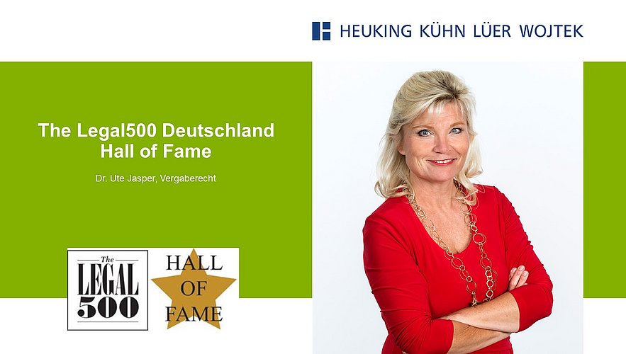 Dr. Ute Jasper is one of the most renowned lawyers for public procurement and infrastructure projects. She advises federal and state ministries, local authorities and companies, particularly on innovative and complex projects. Ute Jasper heads Heuking Kühn Lüer Wojtek’s Public Sector & Public Procurement department. Major projects include the billion-euro RRX project, the dispute over the Belgian Tihange nuclear reactor, and the procurement of vessels and locks for the federal government.