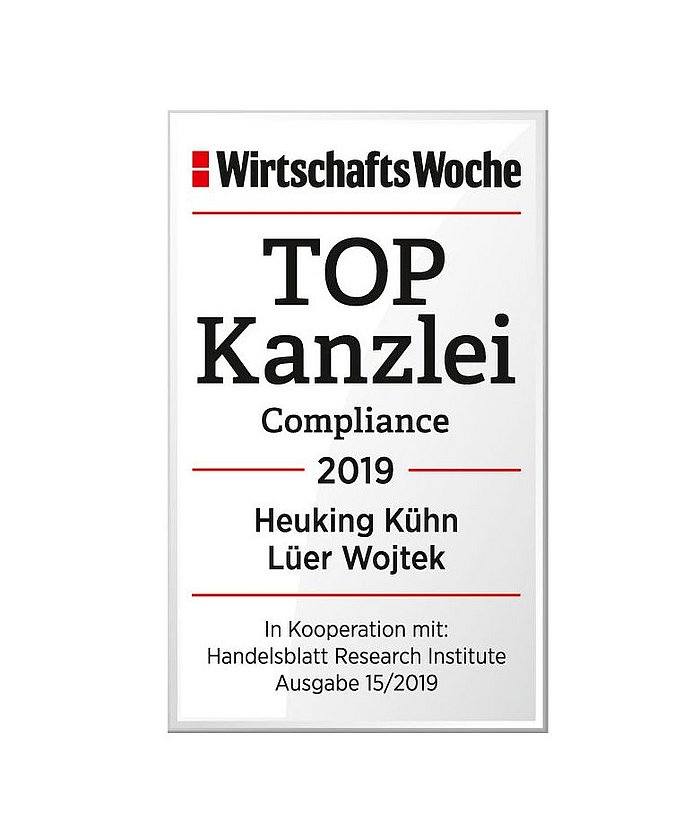 WirtschaftsWoche recognizes Heuking Kühn Lüer Wojtek as a top law firm and its Partner Dr. André-M. Szesny, LL.M., again as a top lawyer in Compliance.