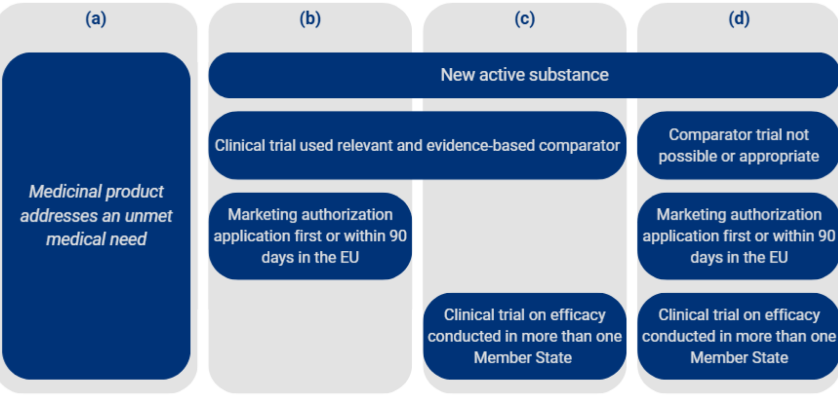 A further one-year extension of market protection is available where the marketing authorisation holder obtains, during the data exclusivity period, an authorisation for one or more additional therapeutic indications for which a significant clinical benefit compared to existing therapies has been demonstrated (Art. 81(2a) Draft Directive). This extension may expressly be granted only once. The maximum duration of market protection is capped at two (2) years, unless an extension for an additional indication is granted (Art. 81(2b) Draft Directive). In that case, a total of three (3) years of market protection is possible. The overall protection period is thus limited to a total of eleven (11) years, in line with the current legal position. From the perspective of research-based pharmaceutical companies, it is a positive development that the originally proposed significant reduction of data exclusivity has been taken off the table and the baseline protection of eight years has been preserved. At the same time, planning uncertainty for pharmaceutical companies is increasing: the complex conditions attached to the market protection extension options are only partially within a company’s control.